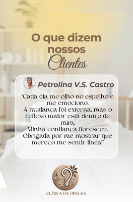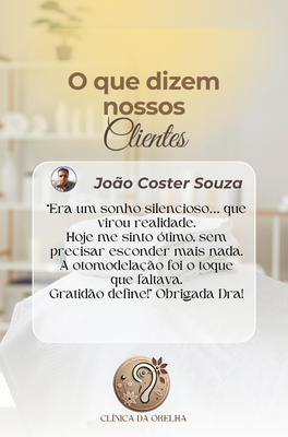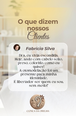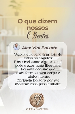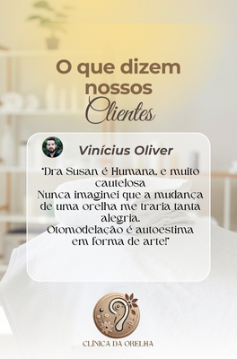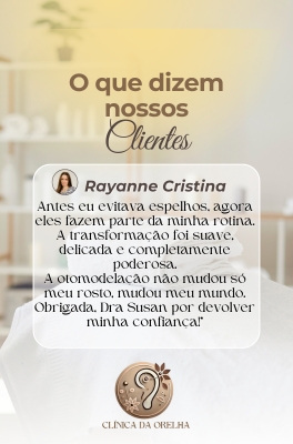 É um procedimento moderno, definitivo e não cirúrgico, realizado com fios cirúrgicos especiais, ideal para corrigir orelhas abertas, de abano ou proeminentes — sem cortes e sem internação! Tudo acontece de forma simples e segura, dentro do consultório, com anestesia local e total conforto. É a solução perfeita para quem deseja modelar a orelha com resultado natural, harmônico e duradouro. Com a Otomodelação você pode transformar sua aparência sem bisturi e com técnica aprovada por milhares de pacientes em todo o Brasil. O resultado é discreto, eficaz e pode ser notado imediatamente.