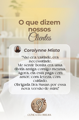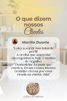 É um procedimento moderno, definitivo e não cirúrgico, realizado com fios cirúrgicos especiais, ideal para corrigir orelhas abertas, de abano ou proeminentes — sem cortes e sem internação! Tudo acontece de forma simples e segura, dentro do consultório, com anestesia local e total conforto. É a solução perfeita para quem deseja modelar a orelha com resultado natural, harmônico e duradouro. Com a Otomodelação você pode transformar sua aparência sem bisturi e com técnica aprovada por milhares de pacientes em todo o Brasil. O resultado é discreto, eficaz e pode ser notado imediatamente.